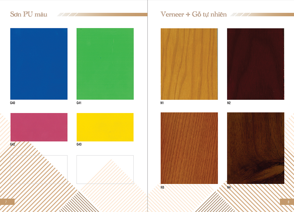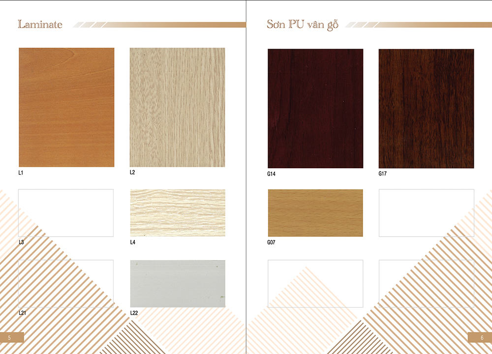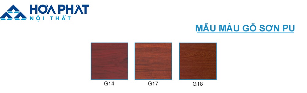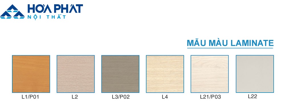 Bảng mã màu gỗ Melamine tiêu chuẩn của Nội thất Hòa Phát dành cho các sản phẩm, bàn làm việc, bàn lãnh đạo, bàn nhân viên, bàn họp…