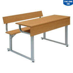 Kiểu dáng: Bàn liền ghế, cạnh bàn có móc treo cặp (mẫu BHS104C không có móc treo).Chân bàn khung thép chắc chắn, mặt chữ nhật, yếm gỗ, đợt để đồ.