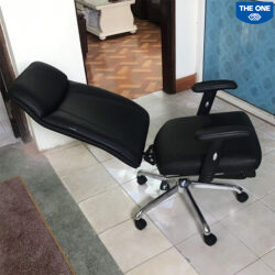 Kiểu dáng: Ghế xoay có tựa đầu. Mép ngồi vát cong hình thác nước. Cụm chân ghế được thiết kế sử dụng bộ piston khí nén có thể điều chỉnh được độ cao thấp. Ghế có cơ cấu ngả tựa và cơ cấu để gác chân bằng nhựa đúc (phiên bản trước tháng 10/2021 bằng mút bọc PVC)